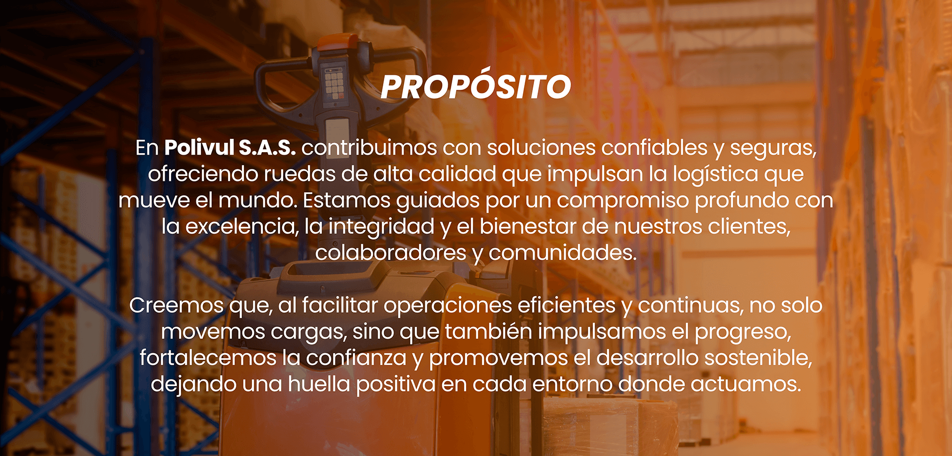 · Queremos ser reconocidos como la compañía experta en ruedas para montacargas eléctricos. Las tendencias indican que, en el futuro cercano, este tipo de maquinaria prevalecerá en la industria, y en Polivul estamos preparados para responder a esta evolución.